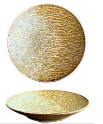 Ten żółty, kamienny talerz z zupą to stylowy, ceramiczny naczyń do stołu, nadający się do posiłków rodzinnych i hotelowych.Unikalna tekstura żółtego kamienia daje naturalny i ciepły stylIdealny do codziennego posiłku i hotelowego użytku, łączy praktyczność z nowoczesną estetyką domu.